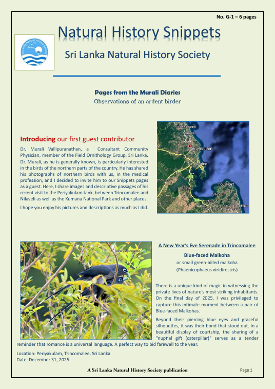 No.G1- Pages from the Murali Diaries 'Observations of an ardent birder' .