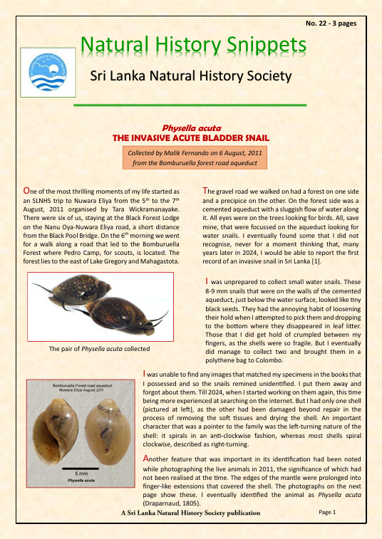No.3- ACAVIDAE – A Family of Land Snails in Sri Lanka with Two Endemic Genera .